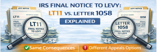 If you’ve received an LT11 or Letter 1058 from the IRS, you’re facing a critical stage in the tax collection process. Both notices serve as a “Final Notice of Intent to Levy and Notice of Your Right to a Hearing,” but taxpayers often wonder: what’s the difference between LT11 and Letter 1058, and what should you do if you receive one? Here’s what you need to know for 2025.